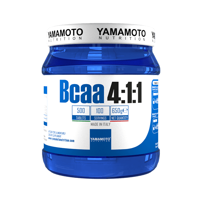 BCAA 4:1:1 Yamamoto Nutrition, 500 tablete este un supliment de aminoacizi cu lant ramificat în proportie de 4:1:1. Este recomandat pentru a suplimenta dieta sportivilor. Produsul este imbogatit cu vitamina B1, care contribuie la metabolismul energetic normal si vitamina B6 care contribuie la reducerea epuizarii si oboselii.