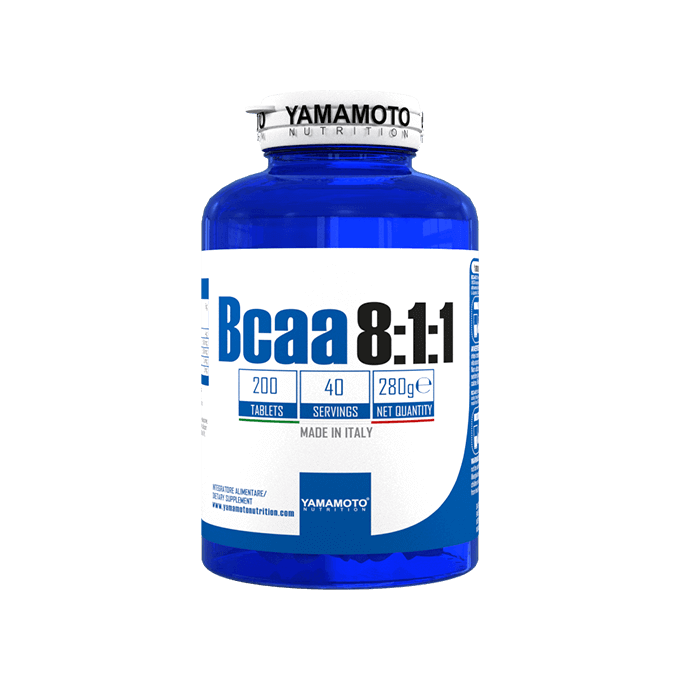 BCAA 8:1:1 Yamamoto Nutrition, 200 tablete este un supliment de aminoacizi cu lant ramificat în proportie de 8:1:1. Este recomandat pentru a suplimenta dieta sportivilor. Produsul este imbogatit cu vitamina B1, care contribuie la metabolismul energetic normal si vitamina B6 care contribuie la reducerea epuizarii si oboselii.
