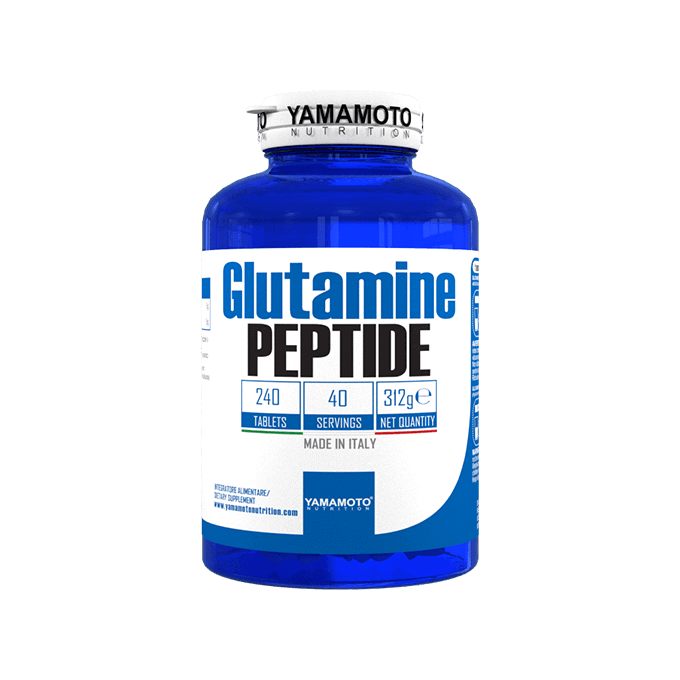 Glutamina PEPTIDE, Yamamoto Nutrition, 240 tablete este un supliment alimentar de glutamina in forma de peptida, adecvat pentru sportivi si sportive care iau parte la o activitate fizica intensa. Este cunoscut faptul ca aceasta imbunatateste performantele, are efect asupra musculaturii si in refacere dupa antrenamentele intense. Legatura glutamina / peptida reprezinta legatura cu un alt aminoacid, facand compusul mult mai stabil. Studiile au aratat ca aceasta forma de peptida face ca glutamina sa fie de 10 ori mai eficienta decat forma simpla.